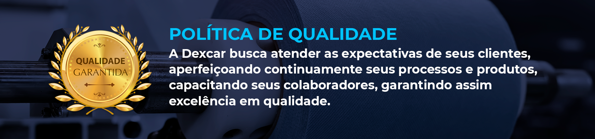 Em nossa marca, Dexcar, o X destacado tem por objetivo evidenciar o nosso compromisso com a qualidade total dos nossos produtos. De uma extremidade – etapas de produção, passando por atendimento, – a outra, entrega dos nossos produtos e suporte no pós-venda.