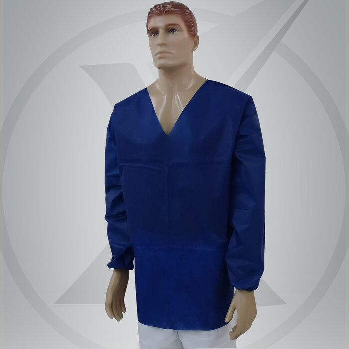 Confeccionado em nãotecido 100% polipropileno. Com decote em V, disponível com mangas longas e punhos em látex ou mangas curtas. Atóxico e hipoalergênico. Disponível nas cores branco e azul marinho. Consulte para saber os tamanhos disponíveis.